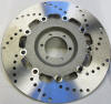 This EBC stainless steel rotor is made from a semi-hard German stainless steel. Weighing 2 lbs., 15 oz., it is the lightest available rotor. Combined with the Vesrah sintered pads, a large increase in stopping power is to be had, with the best feel available. Kit includes longer caliper mounting bolts, precision-machined CNC spacers, Vesrah sintered pads, and the EBC floating Contour rotor, with aluminum carrier, 5mm thick blade, 11mm Brembo master cylinder, w/ brake switch and SS lines w/ chrome banjo fittings for a complete kit with modern feel.